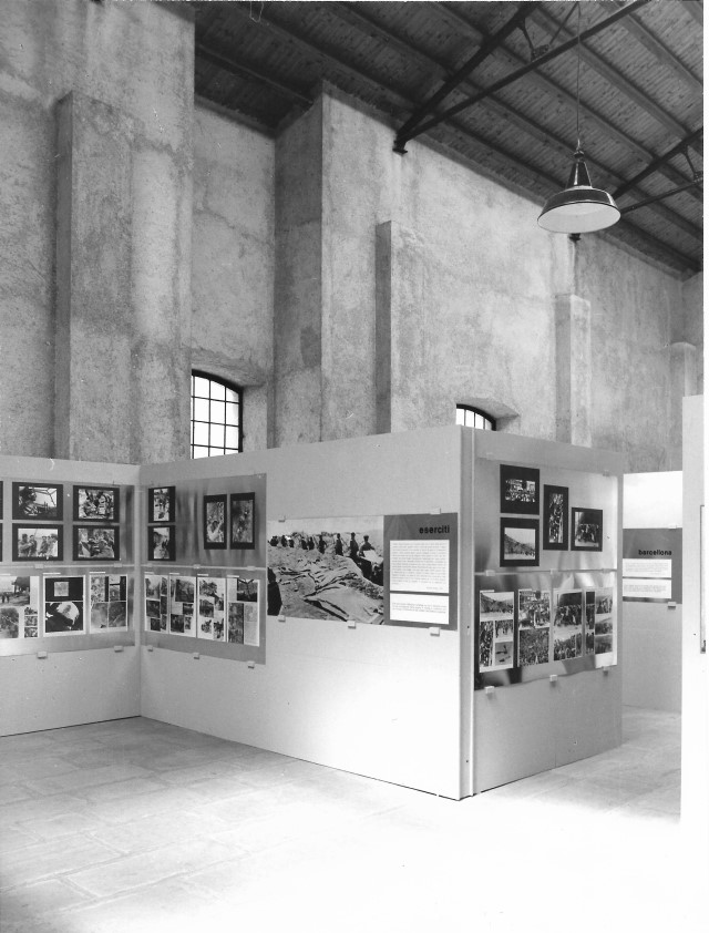 Serie di positivi della presentazione e allestimento "Spagna 1936 -39". La mostra presentata alla biennale di Venezia è stata poi trasferita alla Risiera di San Sabba, fonte: IL PICCOLO 1977/06/14 allegato al cartiglio dattiloscritto con titoli dei positivi.