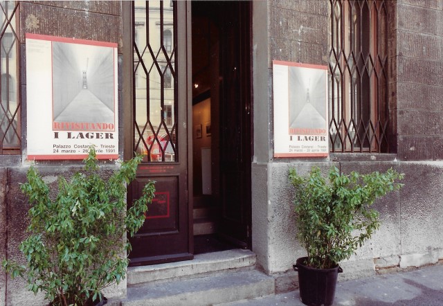 Serie di positivi accompagnati da invito stampato. La mostra "Rivisitando i lager" esponeva, presso la Sala Comunale d'Arte di Palazzo Costanzi, le fotografie dei Lager, in specie Auschwitz, Birkenau e la Risiera di San Sabba, quali si presentano oggi al visitatore. Fotografie dei seguenti artisti: Raymond Depardon, Bruno Fabello, Marcus Hirth, Jurgen Kahlert, Paola Mattioli, Harald Nadolny e Marion Schwanengel.