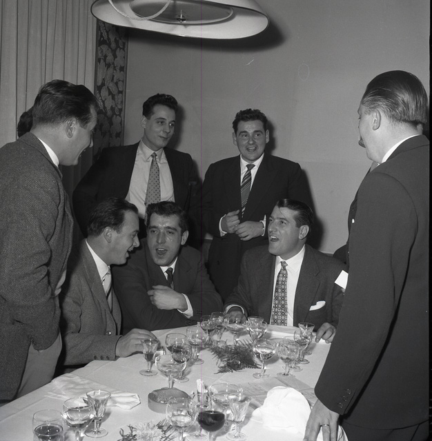 Nella sala rossa dell'Hotel Excelsior, il commissario generale del governo Palamara offre un ricevimento in onore del contrammiraglio Edward N. Parker e degli ufficiali della VI Divisione navale degli Stati Uniti ospite del porto di Trieste. Imbarcatosi sulla New Jersey, il contrammiraglio andrà verso la Costa Azzurra con le cacciatorpediniere Perry e Wren.