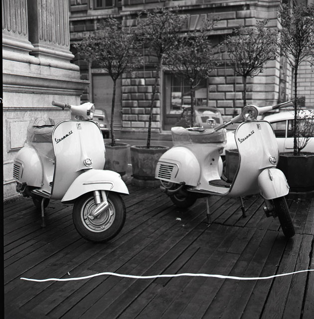 In un locale di Piazza Unità viene presentata alla stampa la nuova Vespa Gran Sport 1962. All'evento è presente anche il Sindaco Franzil. Notizie tratte da Il Piccolo Sera del 4 dicembre 1961