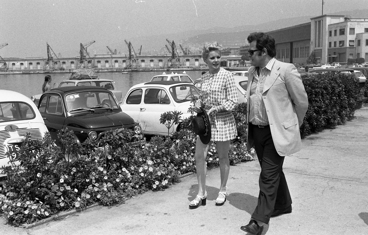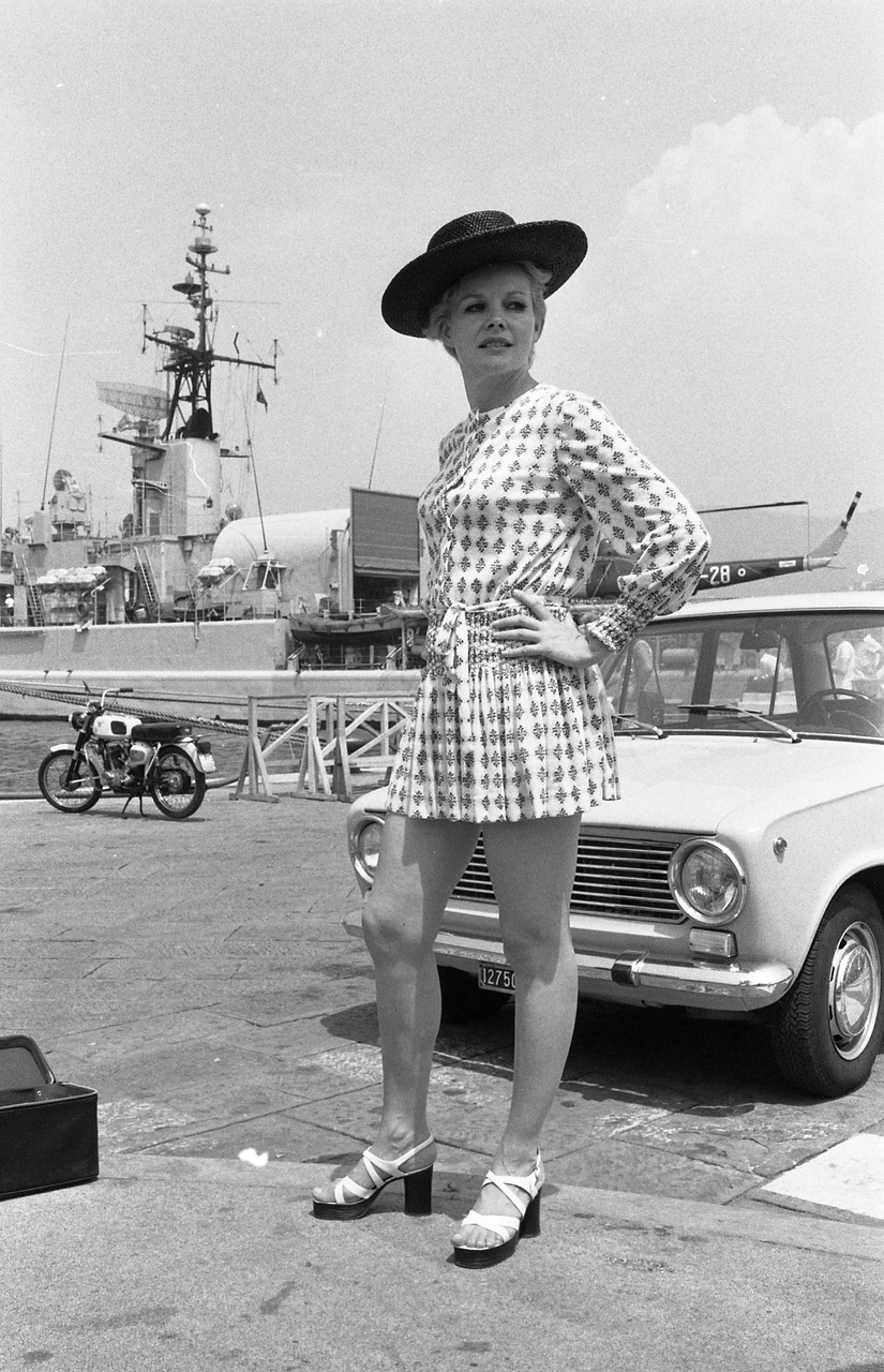 Caroll Baker assiste alla proiezione del film Baba Yaga del regista Corrado Farina insieme all'attrice Isabella da Funes.