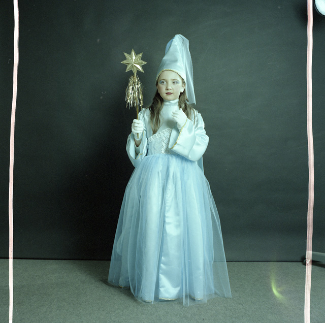 Bambina in costume di carnevale in studio