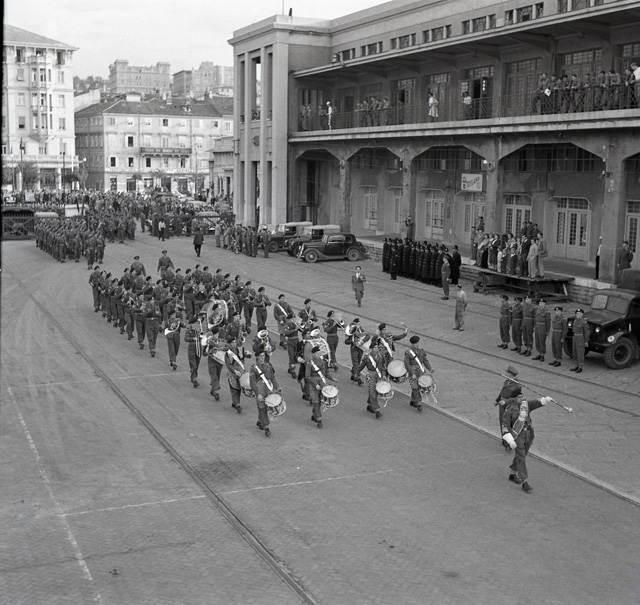 Il 22 ottobre 1951 il primo battaglione del Reggimento britannico South Lancashire, che per quattro anni ha prestato servizio lungo la linea di demarcazione tra le due zone del Territorio Libero, si imbarca sul piroscafo Empire Test, attraccato alla Stazione Marittima. Il battaglione e' diretto a Karthum, nel Sudan anglo-egiziano. Le truppe, partendo dalle caserme di via Rossetti bagagli in spalla, lasciano Trieste sfilando per le vie del centro, accompagnate dalle bande del TRUST, del reggimento North Staffordshire e del reggimento Northamptonshire