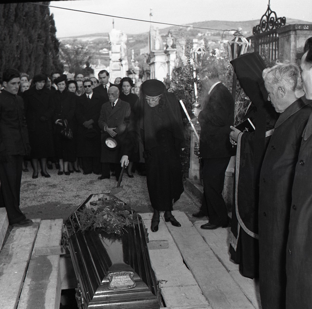 La salma del barone procede, accompagnata dalla folla, dall'ospedale Burlo-Garofolo per le vie della citta, fino alla chiesa greco ortodossa di San Nicolo per la celebrazione delle esequie.
