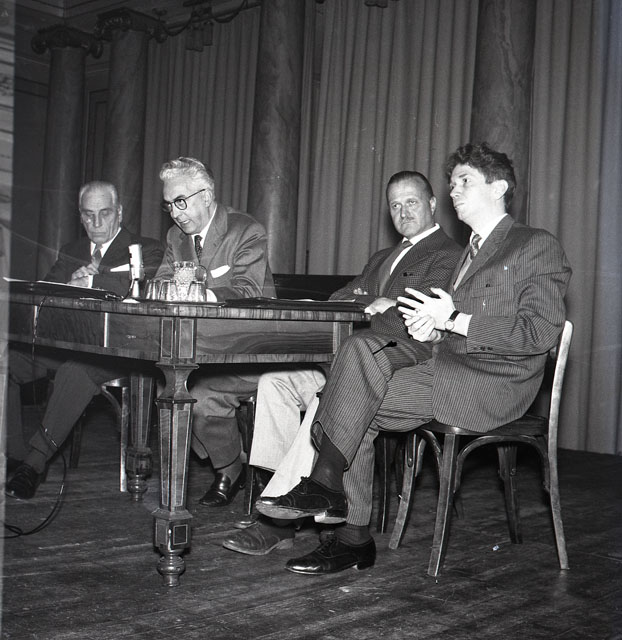La conferenza affronta il tema della tutela e dello sviluppo dei centri urbani. Partecipano il prof. Pio Montesi, l'architetto Piero Bottoni, e il prof. Umberto Nordio.