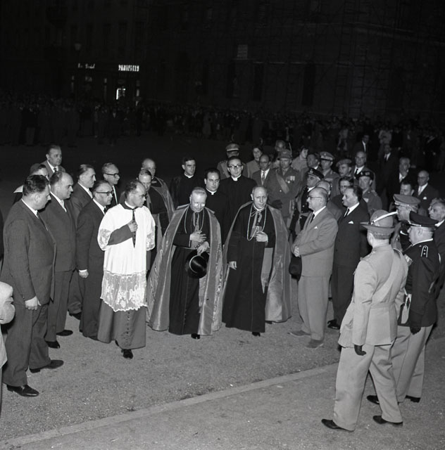 Il cardinale Amleto Cicognani arriva a Trieste per partecipare al terzo convegno nazionale di studi europei che ha riunito eminenti studiosi cattolici e personalità politiche. Tratto da il Piccolo Sera dell'11 maggio 1959.