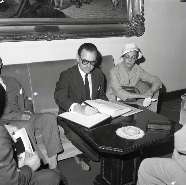L'ambasciatore brasiliano Edmundo Penna Barbosa da Silva e il ministro Sergio Correa da Costa capo del servizio selezione emigranti dell'ambasciata del Brasile a Roma sono in visita alla nostra città ricevuti in Comune dal sindaco Franzil e in seguito al porto per verificare le condizioni dello scalo in vista di un possibile istituzione di un deposito brasiliano di legname. Il Piccolo 15.06.1960
