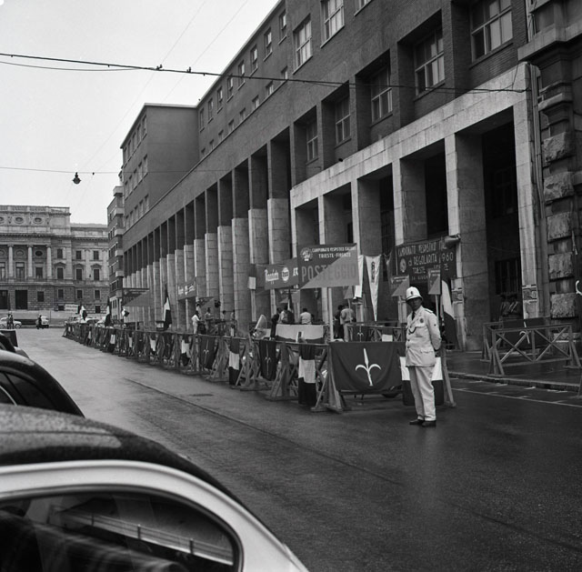Gara di regolarità vespistica Trieste - Firenze, valida per la quarta prova eliminatoria per il campionato vespistico italiano di regolarità. Nonostante il percorso di 550 km su 95 partecipanti ben 91 sono stati classificati a Firenze dove ad accoglierli c'era il presidente del Vespa Club d'Italia Tassinari. Direttore di gara Renzo Castagneto, creatore della Mille Miglia. Fra i classificati Miazzi Ugo e Ussai Ennio entrambi di Trieste. Notizie tratte da Il Piccolo 27.06.1960