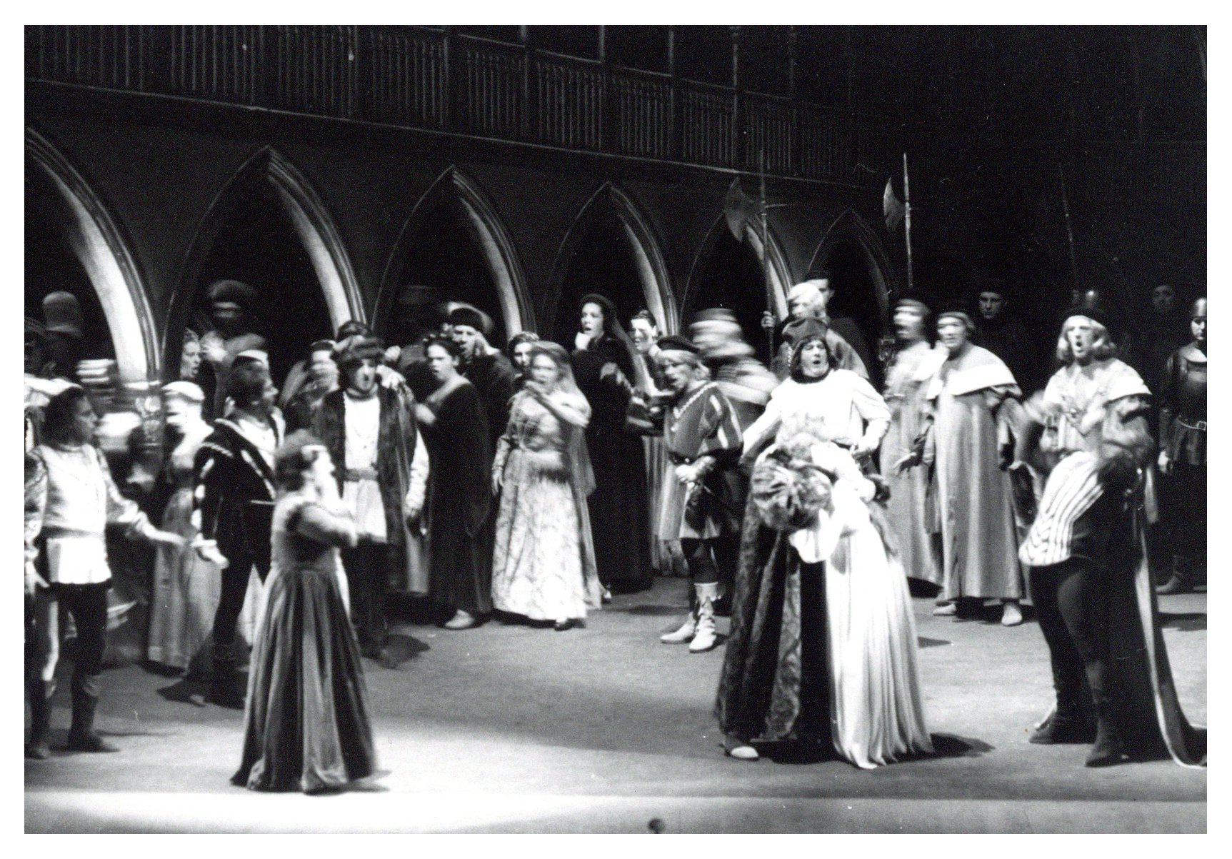 Otello, atto III, Luisa Maragliano nel ruolo di Disdemona davanti alla folla. Teatro Verdi, Trieste, 1967