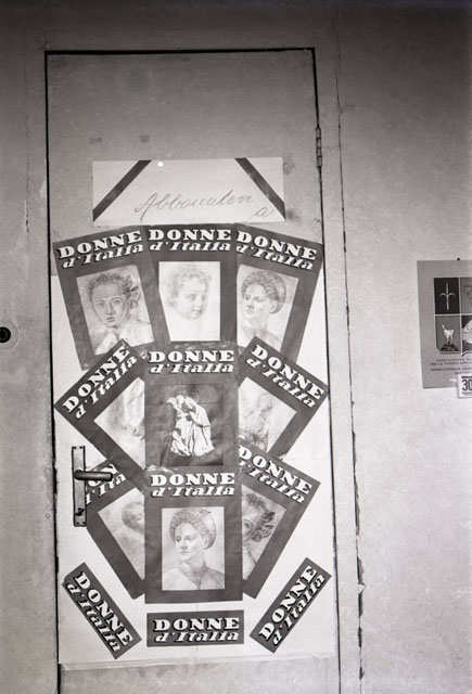 Nell'immagine la rivista Donne d'Italia, il mensile del movimento femminile DC pubblicato dal marzo 1950 al dicembre 1966 e un cartello con la scritta: Abbonatevi