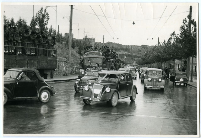 Sfilata di macchine durante le celebrazioni del ritorno di Trieste all'Italia