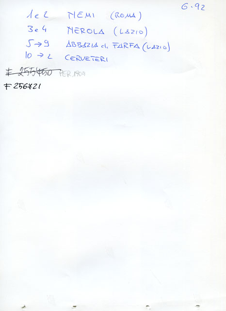1992/06/00; Nemi; Nerola; Abbazia di Farfa; Cervetteri; Ponte dell'Abbadia; Italia