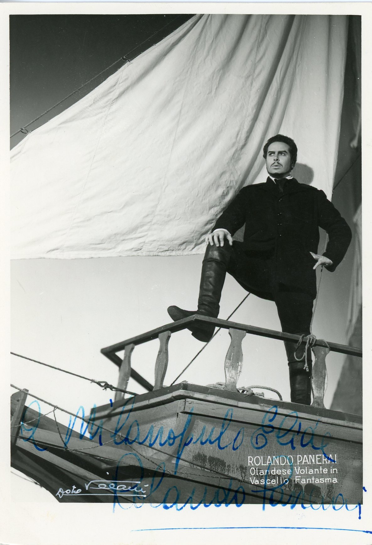 In il Vascello Fantasma, nel ruolo dell'Olandese volante, al Teatro Verdi di Trieste, Stagione lirica 1954-1955. Cantante lirico italiano (Campi Bisenzio, Firenze, 1924 - Firenze 2019). Ha studiato con R. Frazzi, debuttando come baritono a Napoli nel 1947, e si è affermato poi internazionalmente in un vasto repertorio.