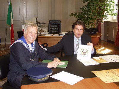 L'assessore Maurizio Bucci assieme al signor Degrassi dell'ADO nella sala riunioni dell'assessorato di Palazzo Carciotti