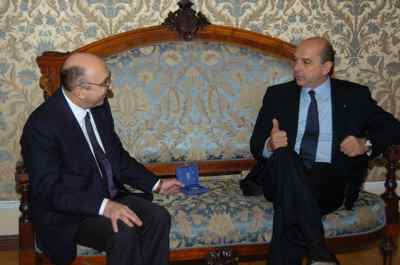 Il sindaco Roberto Dipiazza durante l'incontro con il Soprintendente ai Beni e Attivita' Culturali Giangiacomo Martines, avvenuto nel salotto azzurro del Municipio.