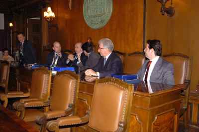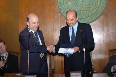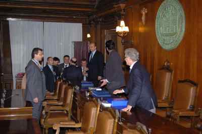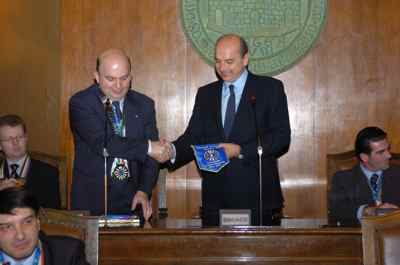 Il sindaco Roberto Dipiazza ed il Presidente del Consiglio comunale Bruno Sulli ed l'assessore comunale Maurizio Bucci con il presidente di Round Table Italia Maurizio Giudici e gli altri rappresentanti presenti al Meeting organizzato dalla Round Table Italiana in collaborazione con il Comune di Trieste, durante l'incontro avvenuto nella sala del Consiglio del Municipio.