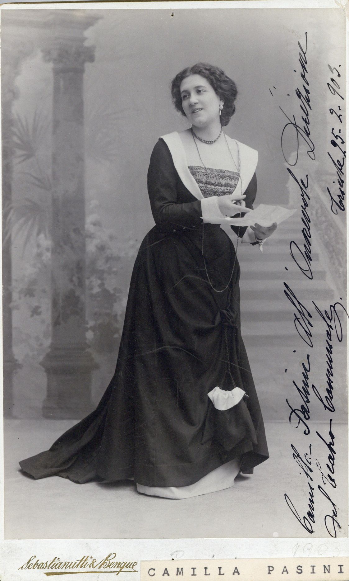 Ritratta in costume di scena nel ruolo di Alice in Falstaff. Soprano sorella di Lina Pasini Vitale celebre soprano wagneriano e di Enrica Pasini, studia a Roma all'Accademia di Santa Cecilia ove debutta al Teatro Quirino.
