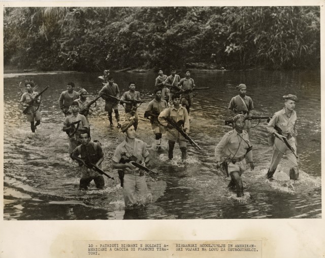 Soldati birmani e americani guadano un fiume