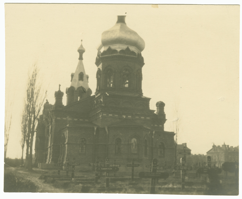 Chiesa ortodossa e cimitero di soldati tedeschi e russi. Sul verso dell'immagine si fa riferimento alla 10. K.D. Armeereserve, ovvero alla riserva della 10. Divisione di Cavalleria (10. Kavallerie Division Armeereserve) inquadrata nella 4. Armata, 17. Corpo d'armata dell'esercito comune austro-ungarico (K.u.K. 4. Armee, 17. Korps).
