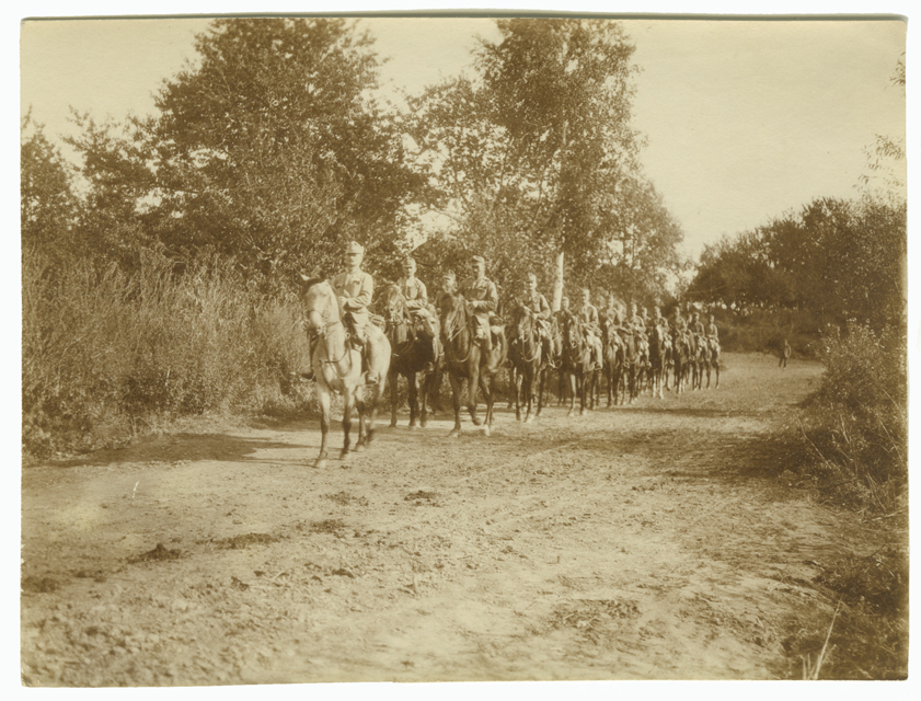 Un plotone dello squadronte tecnico del 12. Reggimento Ulani torna al quartier generale dopo i lavori effettuati