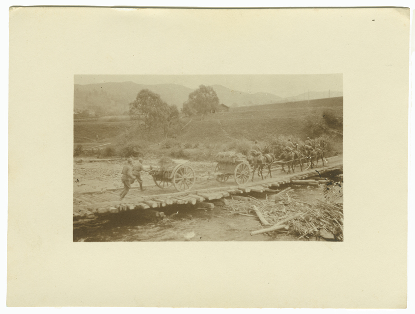 L'artiglieria austriaca passa il ponte costruito dallo squadrone tecnico del 12. Reggimento Ulani in Volinia