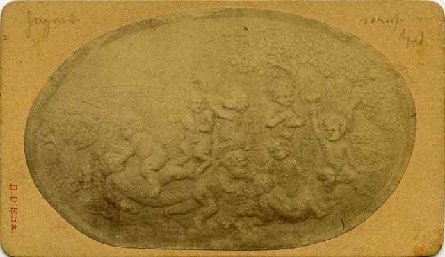 Frammento di sarcofago decorato con una scena bacchica ambientata in un contesto bucolico. La raffigurazione, piuttosto concitata, è animata da paffuti amorini e da satiri in atteggiamento festoso.