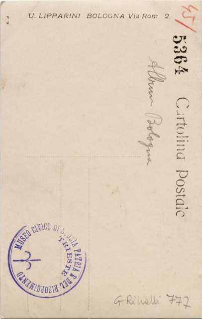 Piero Almerigogna, nato a Capodistra nel 1890, volontario nel 6° Regimento Bersaglieri. Nome da assumersi dall'arruolato: Silvagni Enea di Luigi Via Toscana 5 Bologna