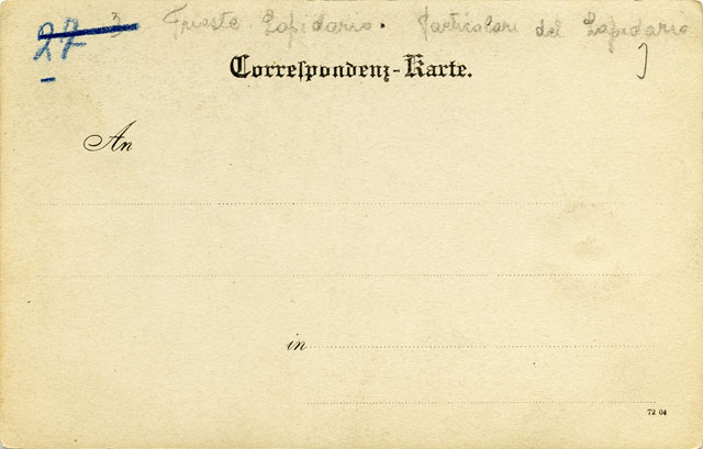 Cartolina postale che mostra la sistemazione dell'odierno Orto Lapidario del Museo di Storia ed Arte di Trieste di fine Ottocento - inizio Novecento. È qui visibile la "terrazza" inferiore del Lapidario, quella prospicente il Museo.