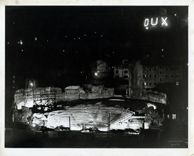 Veduta notturna del teatro romano di Trieste a scavo ultimato.