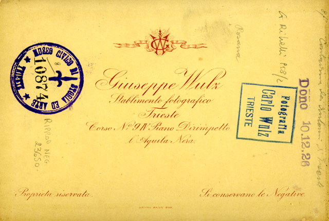 La Trieste dei Wulz, a cura di Elvio Guagnini, con la collaborazione di Daniela Cammilli, testi di Italo Zannier e Elvio Guagnini, responsabile delle immagini Emanuela Sesti, Alinari, Firenze, 1999, p.97 Consulta OPAC