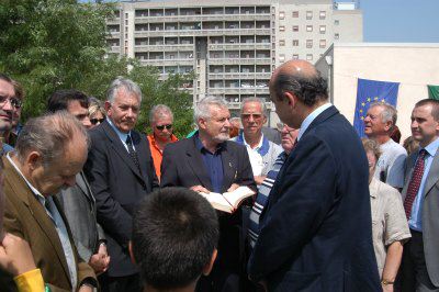 Il sindaco Roberto Dipiazza taglia il nastro alla presenza dell'assessore Giorgio Rossi, di Stelio Borri Presidente del Comitato Provinciale di Trieste del CONI, dei consiglieri comunali Franco Bandelli e Piero Camber e del consigliere provinciale Ettore Rosato