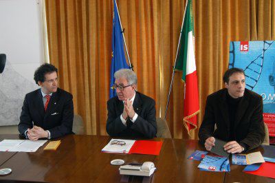 Il presidente del consiglio comunale Bruno Sulli con i curatori dell'esposizione nella sala della giunta comunale