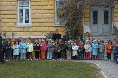 Angela Brandi assessore pianta un albero assieme ai bambini della Scuola dell'Infanzia Pollitzer : Trieste : 2003