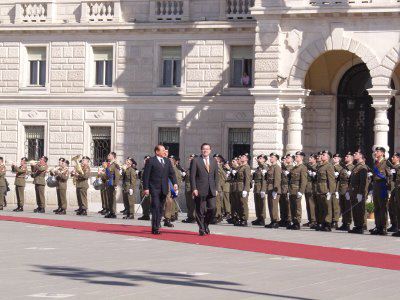 Incontro del Presidente del Consiglio Silvio Berlusconi con il Cancelliere della Repubblica tedesca Gerhard Schroeder : Trieste : 2002