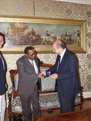 Il Sindaco Roberto Dipiazza con l'ambasciatore del Sud Africa Anthony Mongalo durante l'incontro nel salotto azzurro del Municipio.