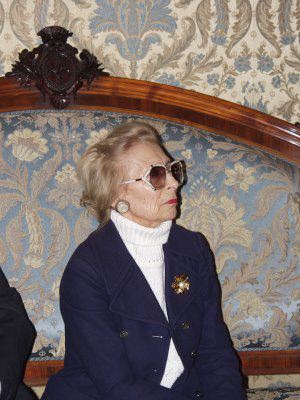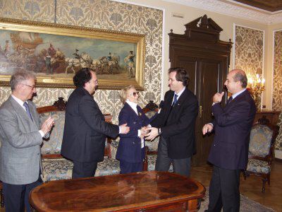 Il sindaco Roberto Dipiazza con il presidente del consiglio comunale Bruno Sulli ed l'assessore comunale Roberto Menia, durante l'incontro con la signora Fulvia Costantinides e suo figlio Fulvio, nel salotto azzurro del Municipio.