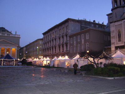 Mercatino di Natale denominato : Un'ambulanza per Natale : solidarieta' europea dei mercatini di Natale , inaugurato in piazza Sant'Antonio Nuovo : Trieste : 2002