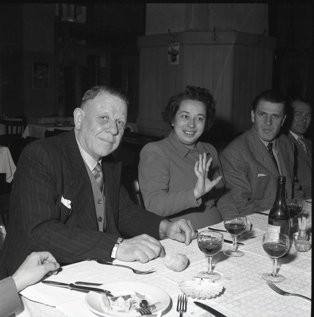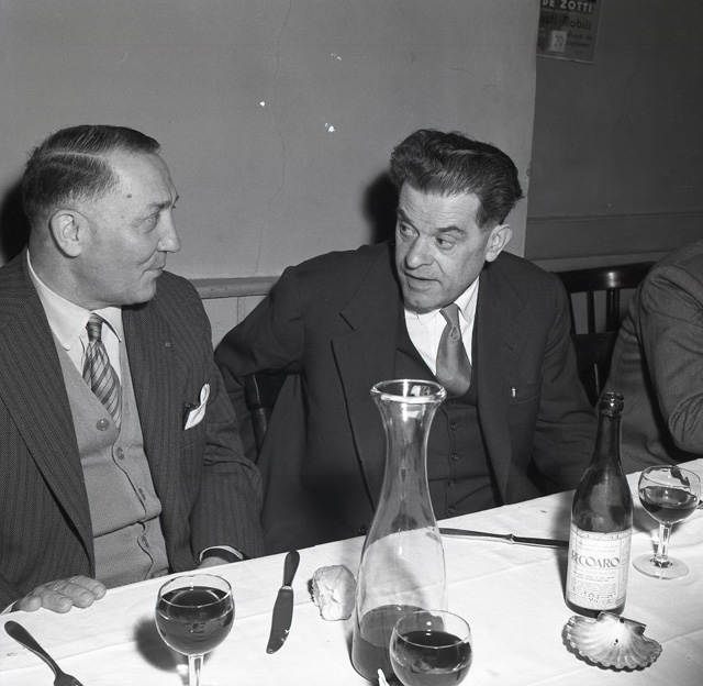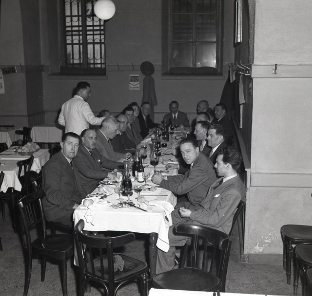Felice Mezzari, consigliere nazionale della Federazione pubblici esercizi, a tavola con un gruppo di esercenti triestini presso la trattoria Pepi Granzo