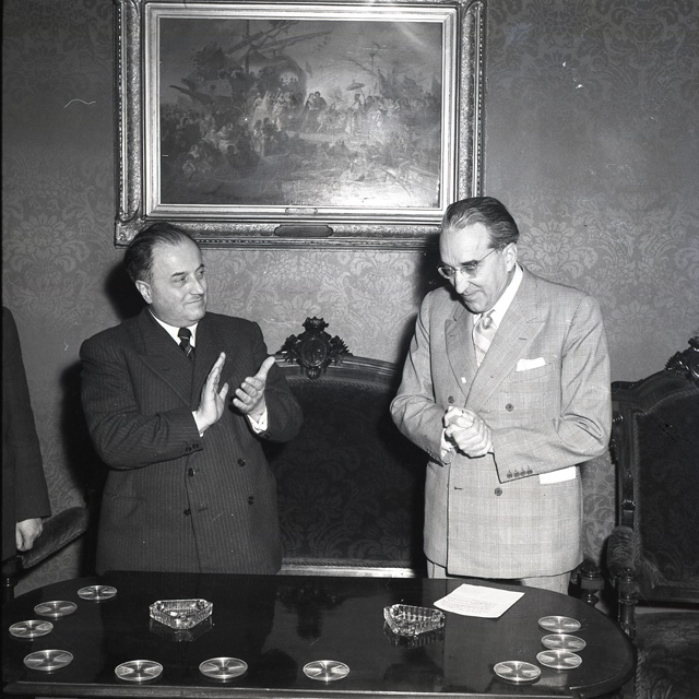 L'onorevole Achille Marazza, ministro del Lavoro e della Previdenza sociale, viene ricevuto dal sindaco Bartoli in Municipio, visita i malati, incontra il vescovo Santin, si reca a San Giusto e presenzia alla cerimonia della posa della prima pietra della nuova sede dell'Inam di Trieste.