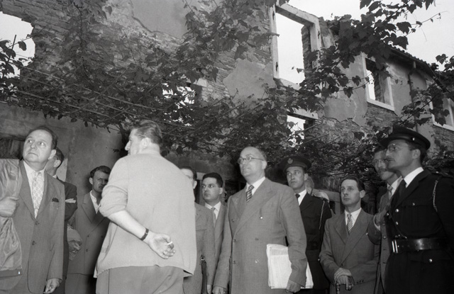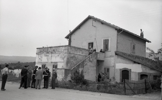 Il dott. Palermo, presidente della Corte d'Assise, compie un sopralluogo a Mattonaia, località nei pressi di Domio, in relazione al processo per il delitto di Emilio Jurissevich, soprannominato la "primula rossa", ucciso da due sicari dell'OZNA il 19 novembre 1949 per motivi politici.