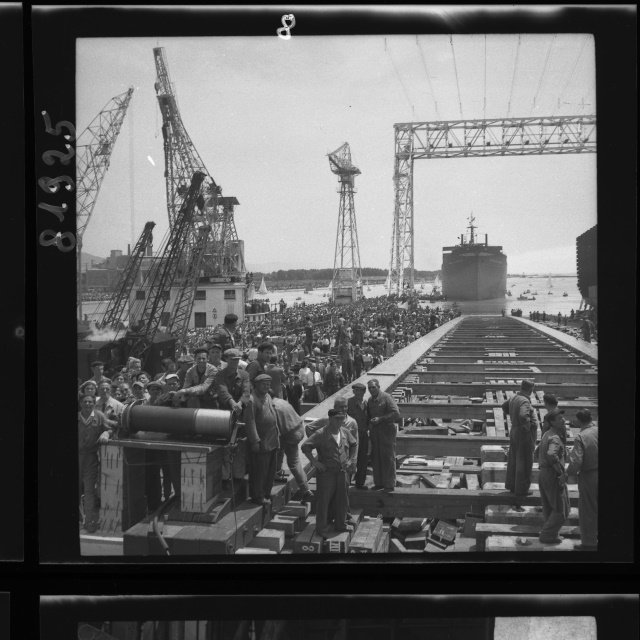 Varo della turbocisterna: Mirella d'Amico, una delle più grandi petroliere europee, alla presenza del Ministro della marina mercantile Paolo Cappa. Madrina dell'evento Mirella d'Amico, moglie dell'armatore Ciro d'Amico (dal Giornale di Trieste, 14-15.06.1953)