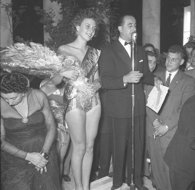 Organizzata dal Circolo della stampa presso lo stabilimento Castelreggio, la Festa della bellezza elegge Miss Trieste Any Spizzamiglio, 21 anni (da: Trieste 1900-1999. Cent'anni di storia, v. 6, p. 256)