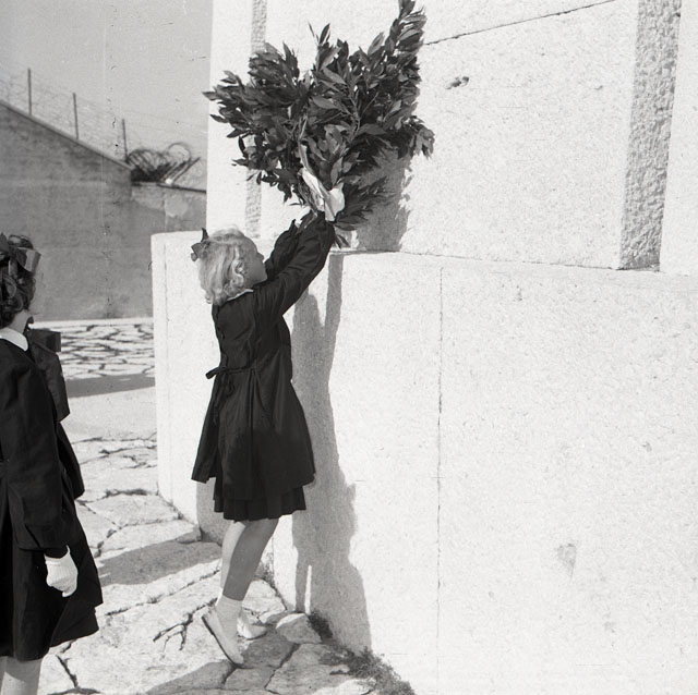 Le alunne della quinta elementare di San Stino di Livenza, vincitrici di un premio per il risparmio, sono le prime scolare d'Italia che vedono Trieste imbandierata. La foto è pubblicata su Il Giornale di Trieste del 13 ottobre.