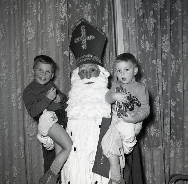 San Nicolò consegna i doni a due bambini presso la loro abitazione