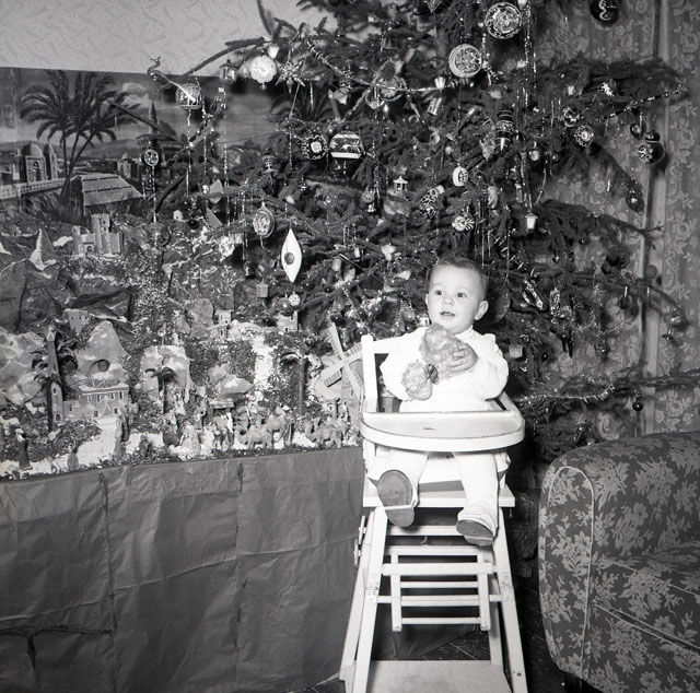 Bambino ritratto in casa con i suoi familiari nel giorno del suo primo compleanno