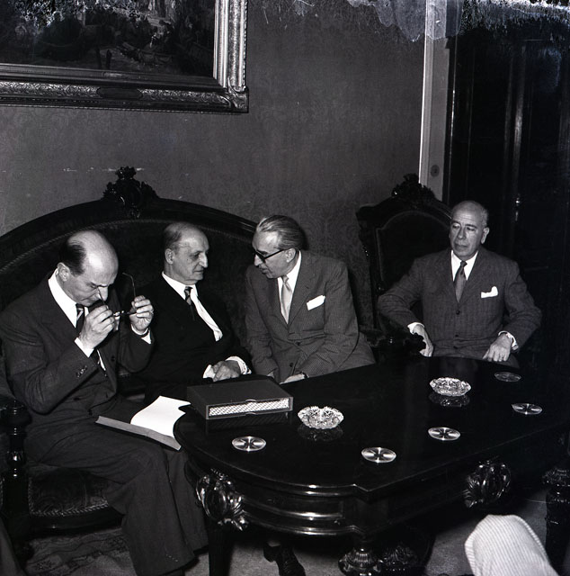 Visita in Municipio dell'on. Bruno Villabruna, deputato del Partito liberale italiano durante la 2. legislatura (25 giugno 1953-11 giugno 1958) e ministro dell'Industria e Commercio durante il governo Scelba (10 febbraio 1954-2 luglio 1955).