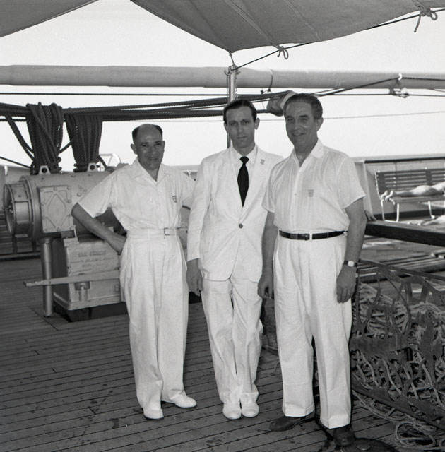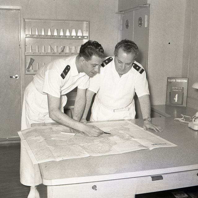 Immagini degli interni della Motonave Victoria con ritratti del personale di bordo, del parrucchiere per signore, di passeggeri impegnati nel gioco della corsa dei cavalli.
