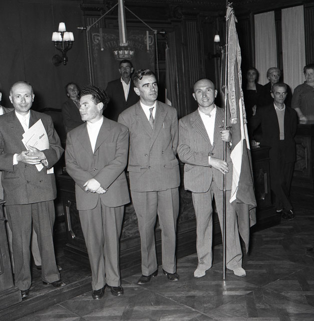 Il sindaco Bartoli riceve un gruppo di agricoltori di Osio di Sotto, accompagnati dal loro sindaco Luigi Chiesa e dal parroco don Giulio Pelliccioli.