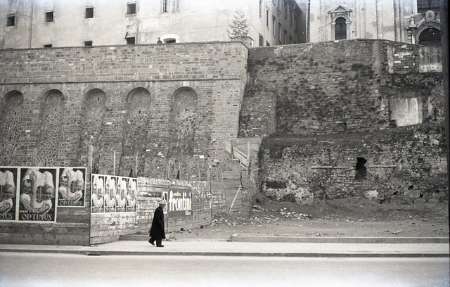 Immagini della base della chiesa di Santa Maria Maggiore e del convento dei francescani, con gli sventramenti della citta' vecchia