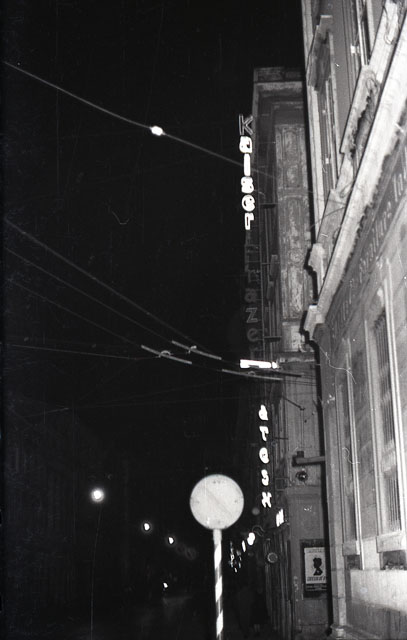 Insegna luminosa della agenzia d' auto Kaiser Frazer Agency in via Ghiberti 3